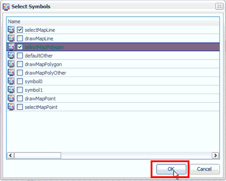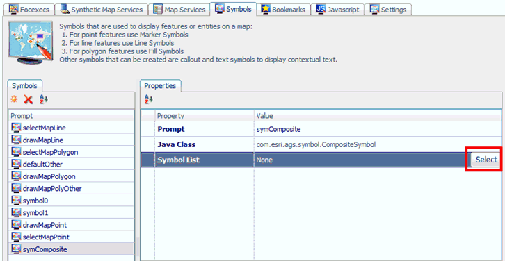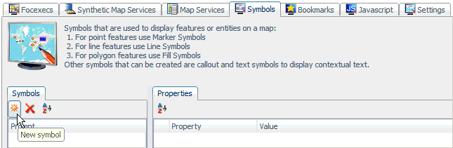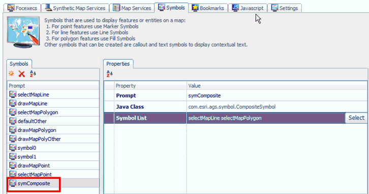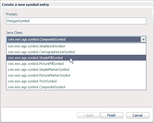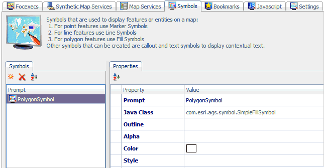 The new symbol definition (for example, PolygonSymbol) is added to the Symbols pane in the ESRI Configuration Utility, as shown in the following image.