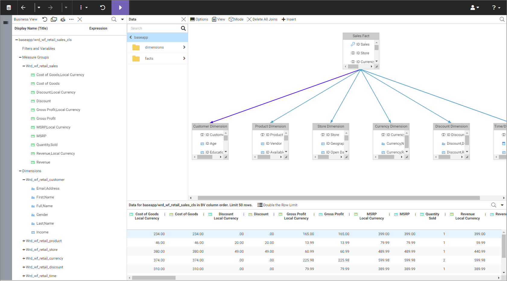 Note: Show and Add Related Dimensions options are only available for Relational data sources if Foreign Key to Primary key information is available in the RDBMS.