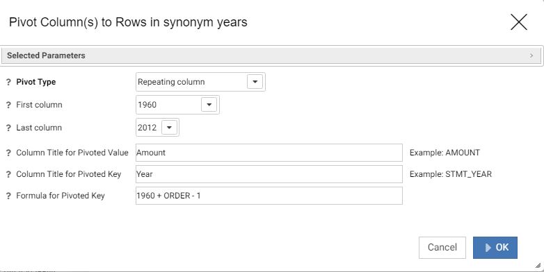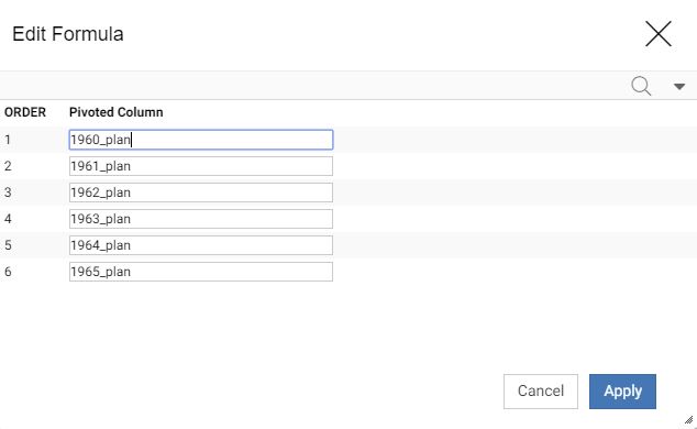 Make sure there are no repetitive alphanumeric values in the Pivoted Column field. In the example above, delete _plan in each field to show only the year.