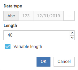 You can use the Length option to select the number of characters to display in the field, and enable variable length. Variable length indicates that the number of characters can vary depending on the data that is stored in the field.