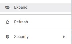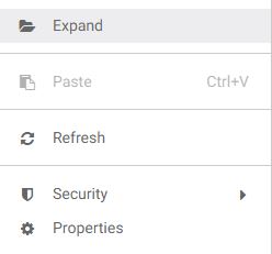 The Web Content folder provides the right-click options Expand/Collapse, Refresh, and Security, as shown in the following image.