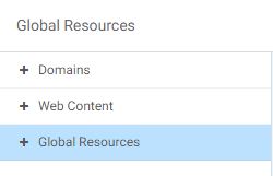 Administrators have access to a Global Resources folder on the Domains level in the Resources tree. The Global Resources folder contains files that are used to style and format your content in WebFOCUS Designer and Portal Page Designer. Clicking on the Global Resources folder changes the breadcrumb trail in the navigation bar, as shown in the following image.