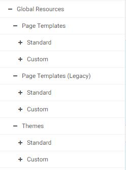 The Global Resources folder contains three main subfolders: Page Templates, Page Templates (Legacy), and Themes. These main subfolders as shown in the following image.