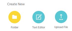 Clicking a Web Content folder displays the following additional Create New options on the Actions Bar: Folder, Text Editor, Upload File.
