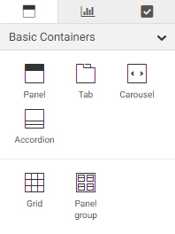 Using this tab, you can select empty containers that you can drag to the canvas and populate with the content of your choice. The types of containers available to you include the following: