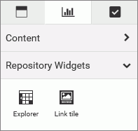 The Repository Widgets area, shown in the following image, displays the Explorer and Link Tile widgets, which give you more ways to interact with your content.