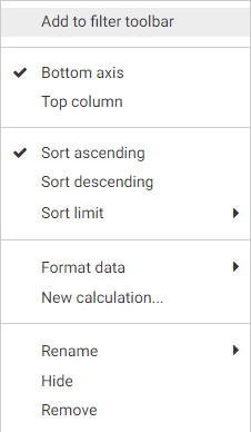 When you right-click a query variable, you can add it to the Filter toolbar or create a new calculation using the filter.