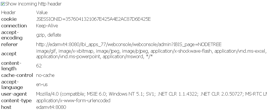The HTTP header contains variables whose values describe the Web Server environment and can specify credentials coming from the Web Server or a third-party single sign-on product. The Reporting Server can use the GETHEADR function to retrieve the value of an HTTP Header variable from an HTTP header passed to it by the client.