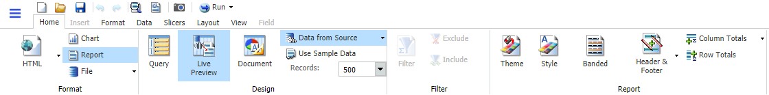 - For visualizations, the Clipboard, Data, Visual, and Storyboard