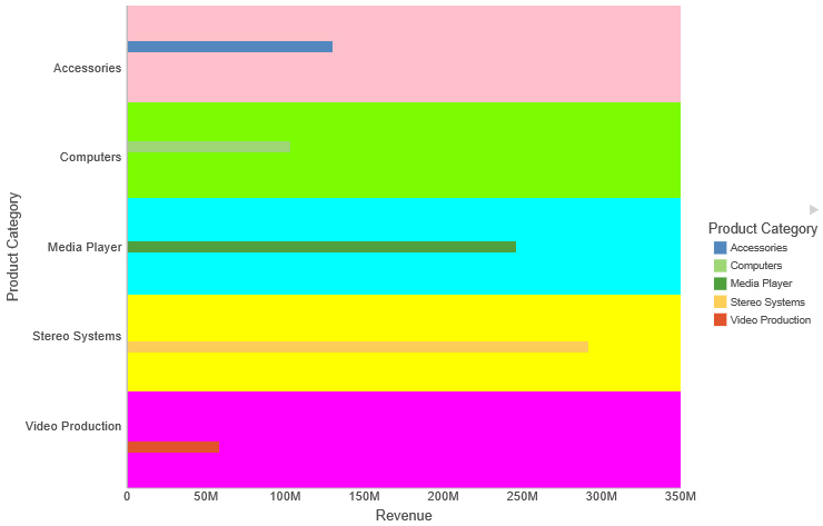 Color bands come in a pair, with each band uniquely colored. They appear in a continually repeating pattern behind a series on a chart. The contrast of colors is designed to make the chart easier to read.