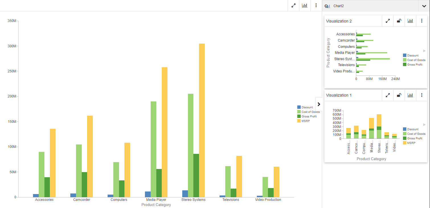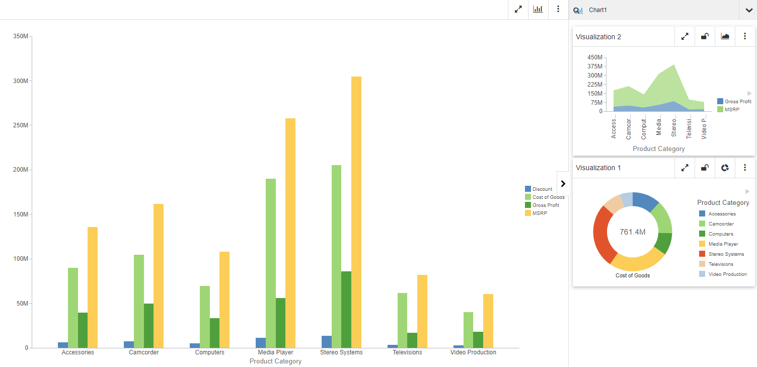 When you create a new report or chart from an interactive component, it displays in the Analysis panel, where you can interact separately with the new component. This panel appears to the right of the screen. The Analysis panel is shown in the following image.