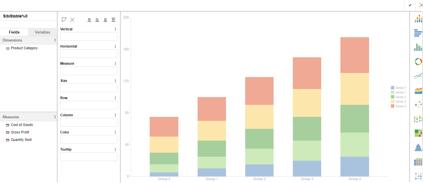 The interface loads with the fields that you had originally selected. This makes it easy to select different fields to create different types of charts at run time.