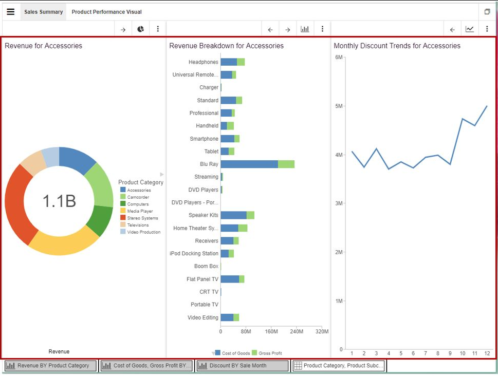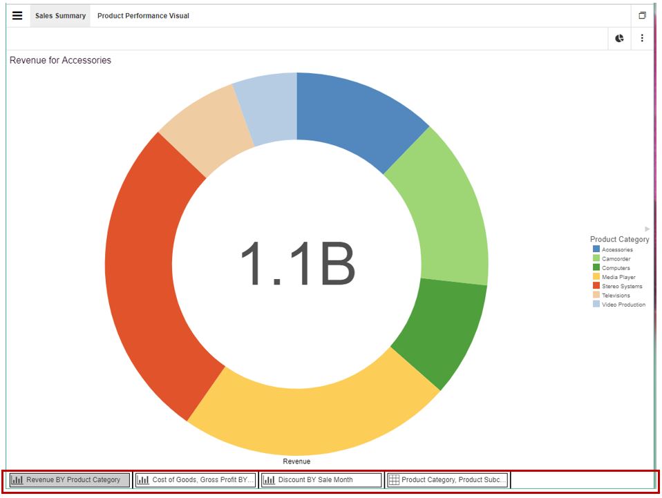 In addition, when you are adding new information, for example, multiple reports and charts, into the Analysis panel, you cannot save each instance of your analysis as an end-user. Each session is dedicated to the current analysis only. If any of your artifacts contain multi drill or auto drill links, for example, you can interact with these at run time.