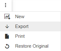 The interactivity of the content is supported by standard Graphical User Interface (GUI) options that enable you to perform tasks quickly. For example, the Ellipsis menu offers options for creating new items, as well as printing and exporting. The hamburger menu allows you to return from maximized view. The following tools will enable you to effectively navigate In-Document Analytics interactive content.