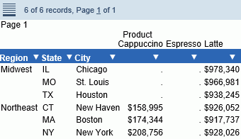 By default, the report displays columns that have only missing or null data, as shown by the Espresso column in the following image.