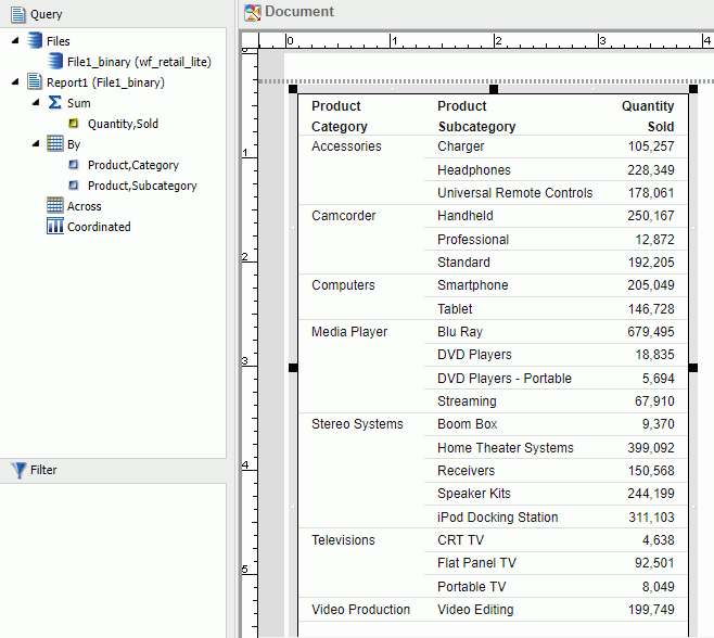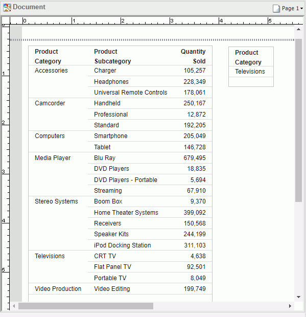 This creates a second report, which you can drag and resize as needed on the Document canvas.