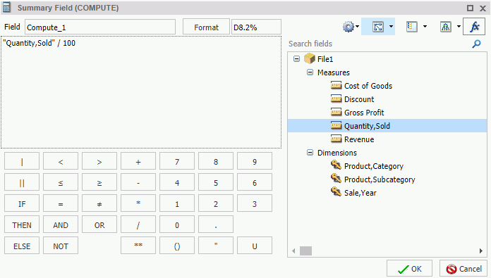 The following image is an example of the Summary Field (COMPUTE) dialog.