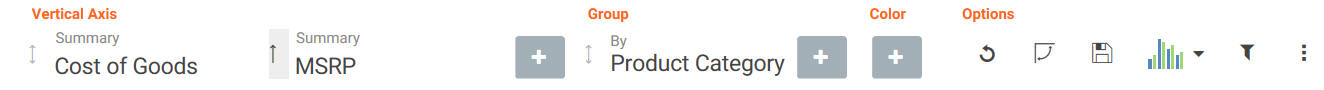 The Options toolbar is located in the upper-right corner of the Insight interface. These options control your interactions with your data, including options such as pivoting and filtering. You can also change your chart type using the Chart Picker option.