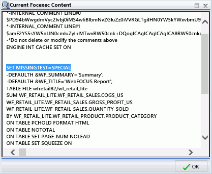 This sets the WebFOCUS environment parameter MISSINGTEST to SPECIAL (that is, SET MISSINGTEST=SPECIAL).