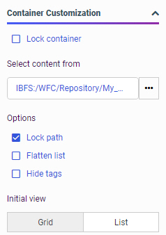 Note: When the page is used in a portal, content customization changes that the user makes at run time to unlocked containers are remembered if the user has the Save Portal Customization privilege. If the user does not have this privilege or if the content customization changes are made to a standalone page, these changes are not remembered by WebFOCUS.