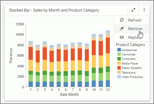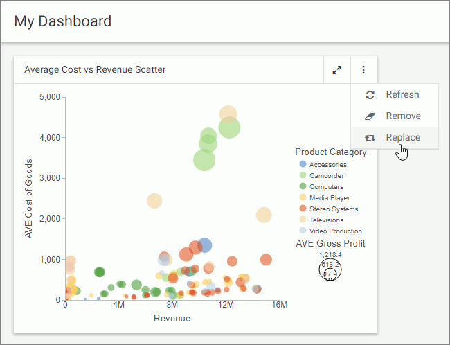 If you enabled container customization for a container with content in it, click the Options menu and then click Replace, as shown in the following image.