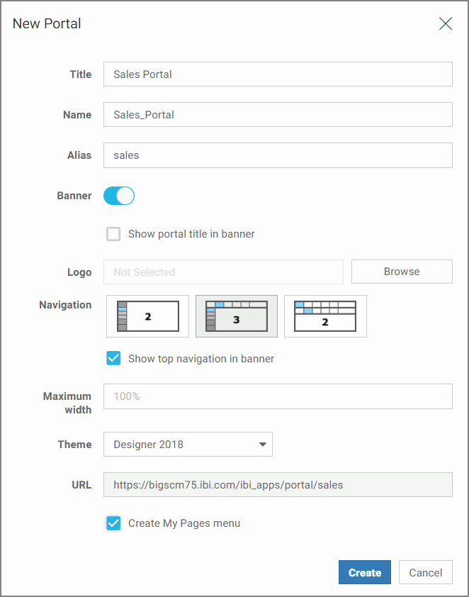 Note: It is recommended to disable the banner if you plan to embed your portal into a third-party application.