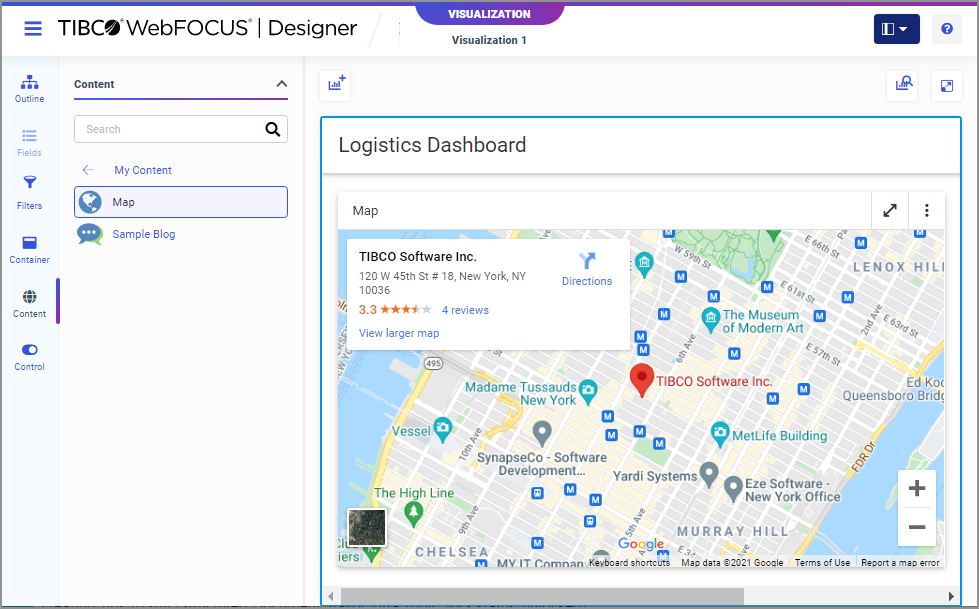 Note: Some web pages cannot be run inside an iFrame or inside the preview Run window on the WebFOCUS start page. You can run these web pages in a new browser tab or window.