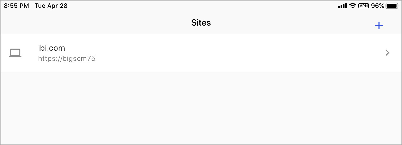 The Sites screen displays, and the new connection is added, as shown in the following image.