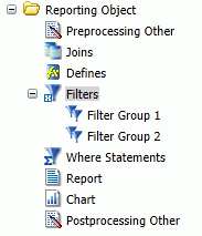 You are returned to the Reporting Object tool. The filter group folder appears below the Filter component node.