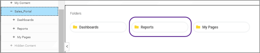 In our example, we locate the Regional Sales page inside the Dashboards folder, as shown in the following image.