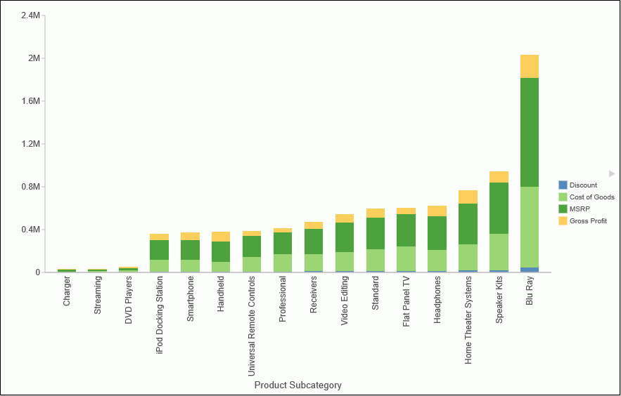 Once you create a bar, line, or area chart, you can sort the results in ascending or descending order. While this feature was implemented specifically for Stacked Bar charts, it also applies to other chart types, as previously mentioned. This feature enables you to view your data in numerical order, allowing you to identify trends and determine what data points are priorities.