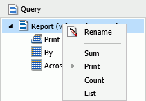 2. In the Query pane, on the Report component, change Sum to Print, as shown in the following image.