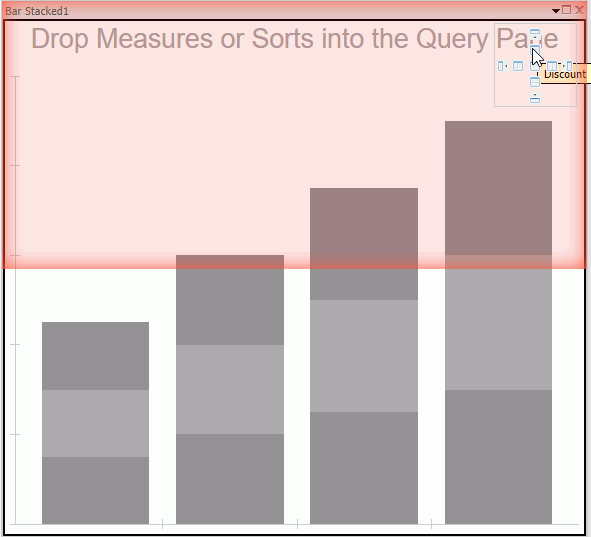 The handles display within the shaded area. They allow you to indicate where you would like to place the current visual relative to the others on your canvas. The handles are located in the upper-right corner of the selected visual, as shown in the following image.