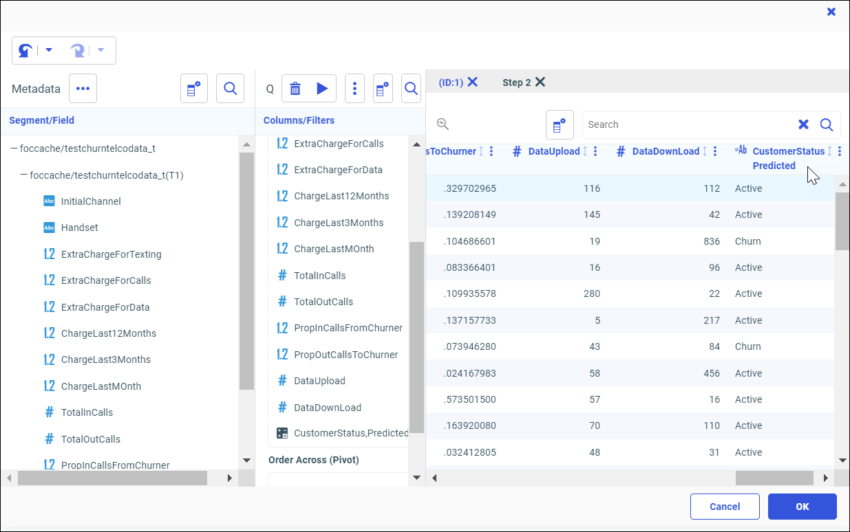 The dataset now predicts which customers will remain active and which will churn, as determined by the predictive model, based on values in the dataset.
