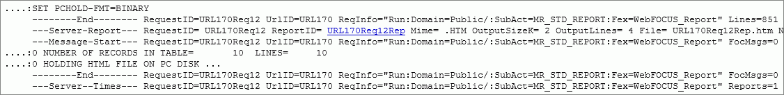 To view output traces, click on the link from an underlined URL request response entry in a URL Trace entry, such as: