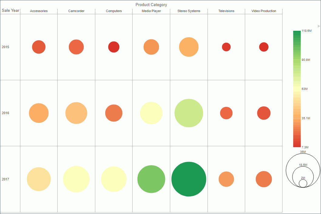 The following visual is a matrix marker chart that shows sales data for a range of electronic products.