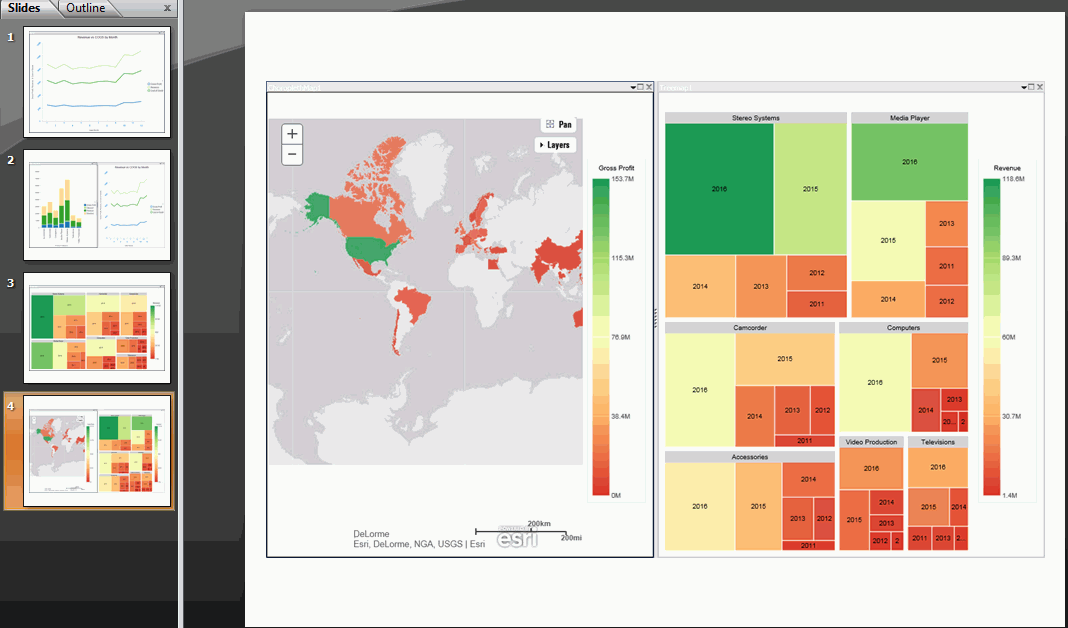 Since storyboards give you the ability to turn your visualizations into a PowerPoint presentation, you can modify your storyboard to create a customized demo. For example, you can rearrange or delete slides, or add titles and text.