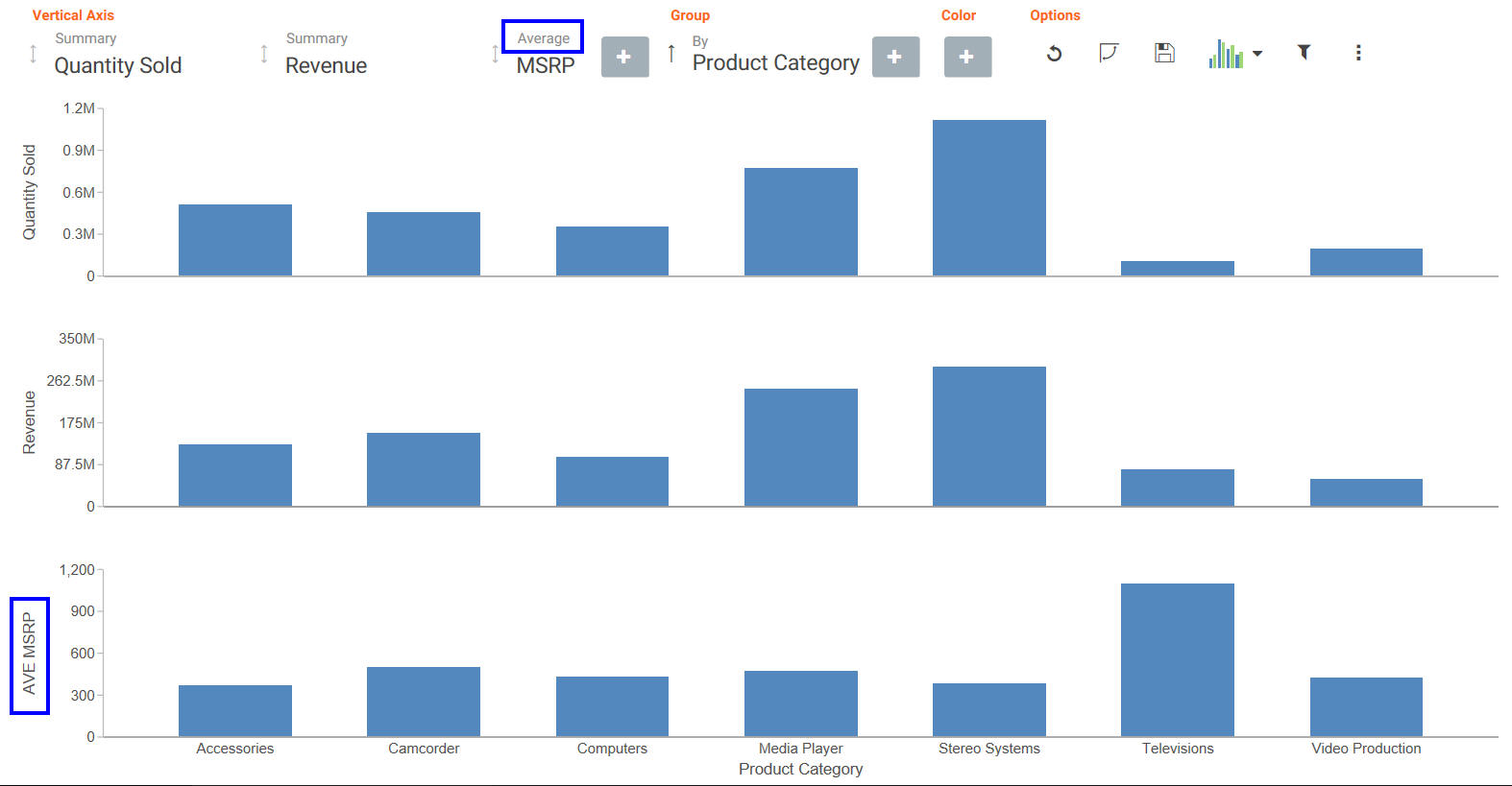 and MSRP for each Product Category, click the plus sign to add fields using the drop-down field selector. Once you choose