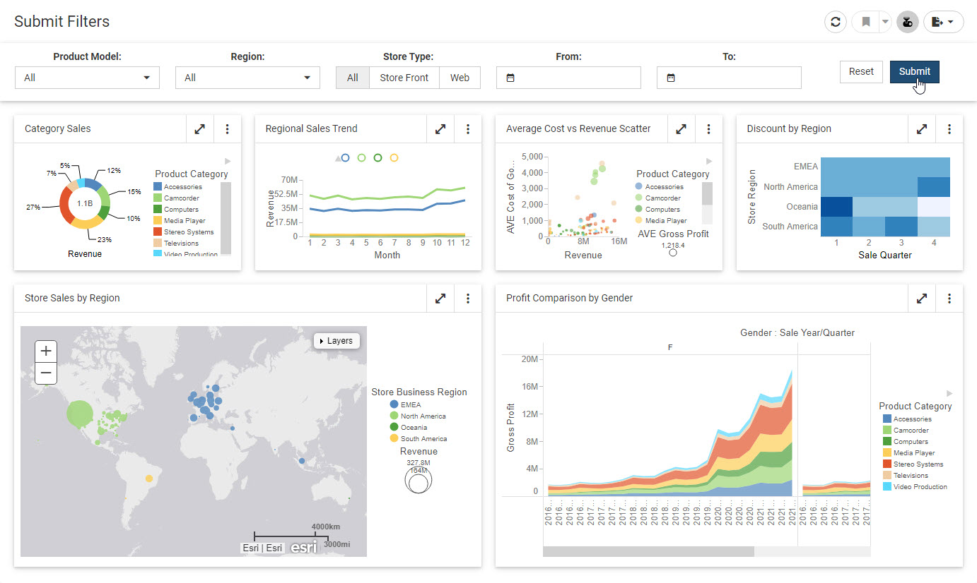 The content refreshes to reflect all your selections upon clicking the Submit button, as shown in the following image.