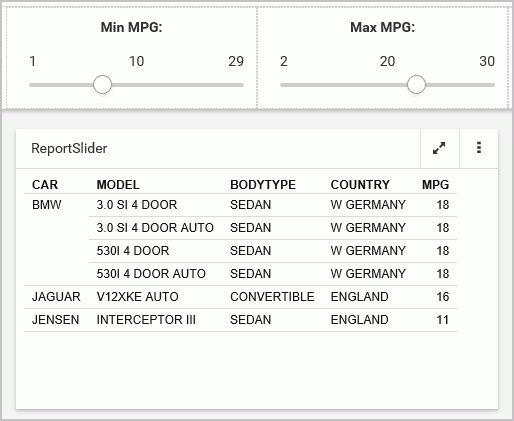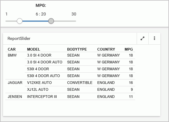 Click the filter, and use the slider options on either side to modify the range of data values. You can set a range using both ends of the slider. To select a single value, set both ends of the slider to the same value.
