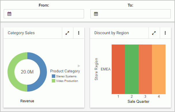 For example, the following image shows a chart with multidirectional filter chaining enabled. Notice that, since the filter for Sale Day was set to 31, only months with 31 days are shown in the drop-down list for Sale Month.