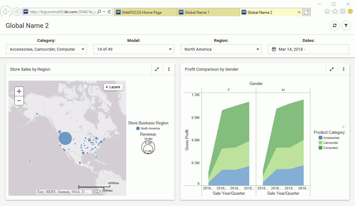 The Global Name property is a powerful tool that allows you to quickly synchronize filter control values between different pages. The Global Name property is configured on the Settings tab of the Properties panel for a filter control in an assembled page. Once enabled, it allows you to match your filter selections across multiple pages at run time within the same browser session. This option is especially useful in a portal. The global name can be used to synchronize filter control selections across multiple pages in the same portal.