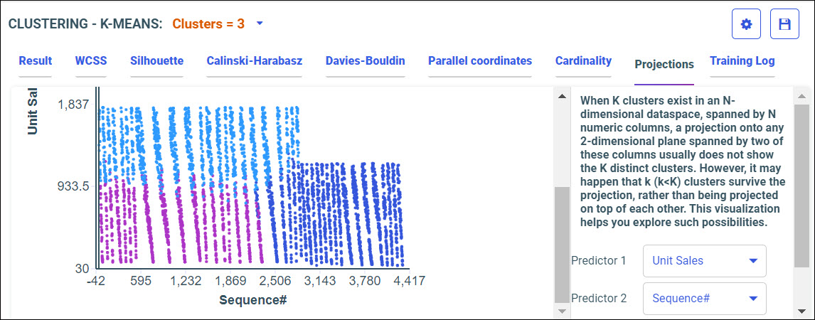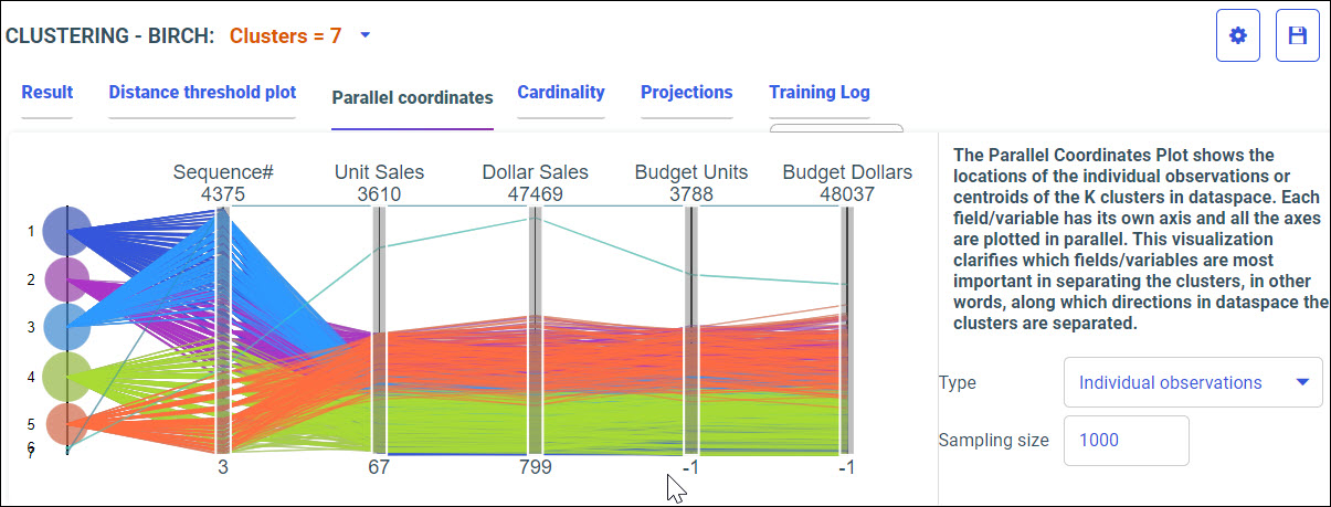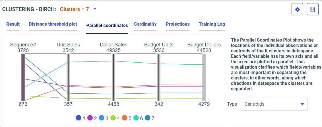 Your model data displays according to your model algorithm. You can select the K-MEANS Clustering or BIRCH Clustering algorithm from the drop-down menu. The best algorithm is selected by default.