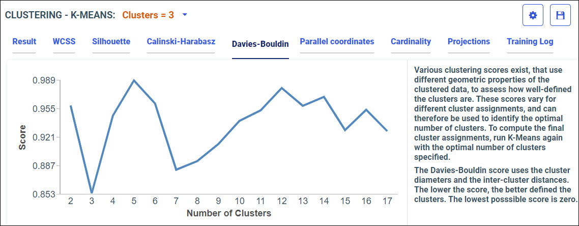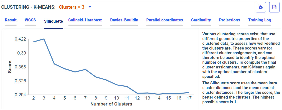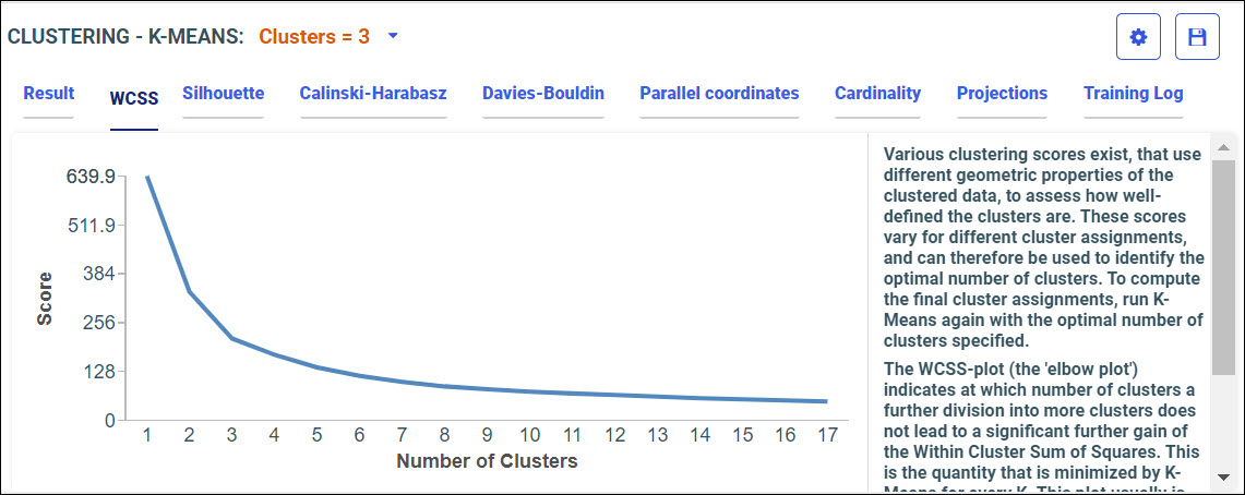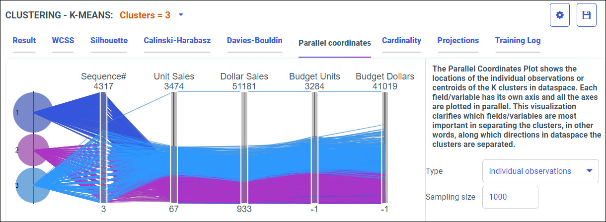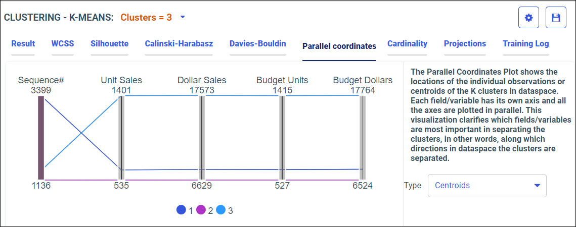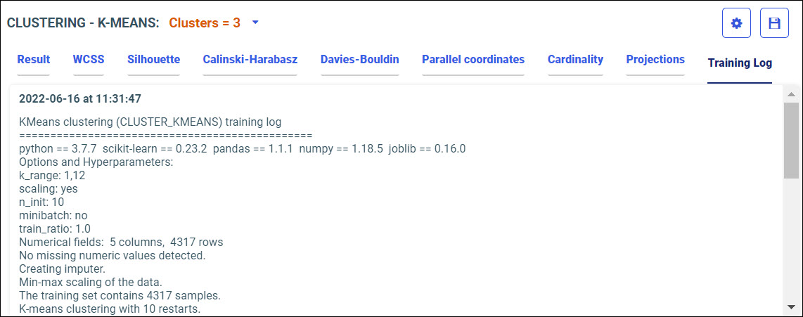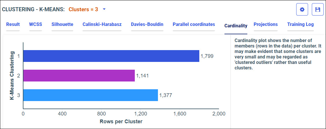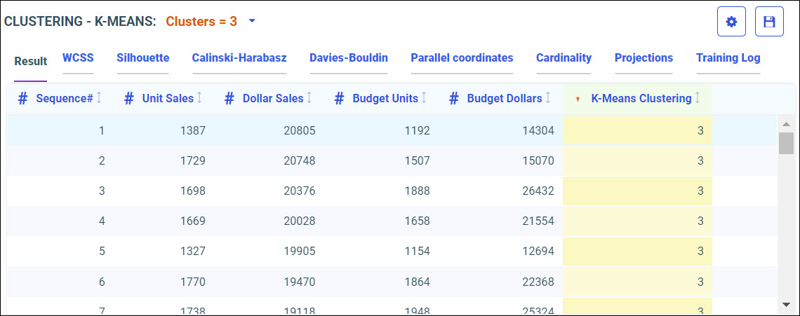 Your model data displays in the following tabs, using the K-Means algorithm.