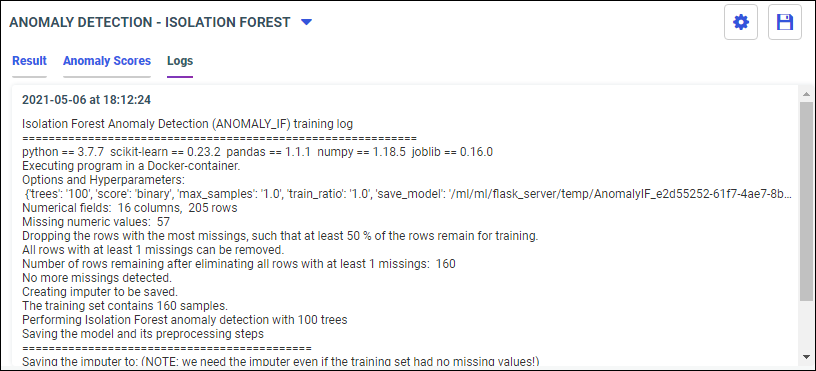 Your model data displays in the following tabs, using the Isolation Forest model algorithm.
