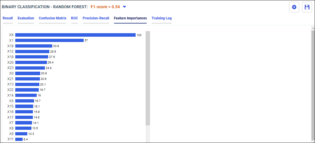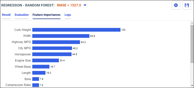 Your model data displays in the following tabs. You can select different model algorithm options from the model drop-down menu. The best model is selected by default.