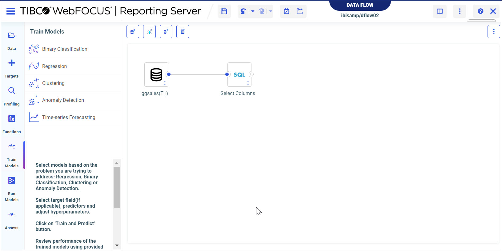 After you create a Data Flow, you can select from different model algorithms to run against your data set.