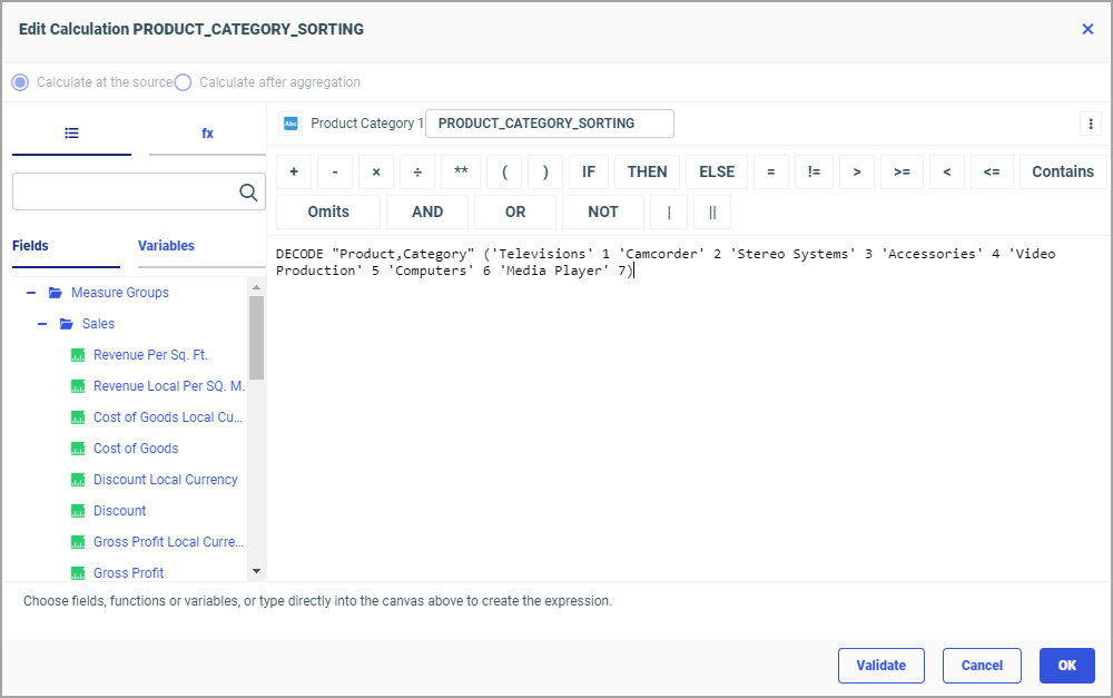 Notice that the sorting order is consistent with the one we configured in our calculation, but the values are represented by sorting numbers