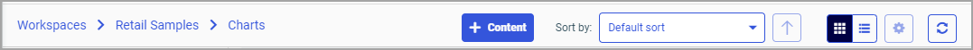 You can use the page toolbar to move between folders in your repository, create and sort content, search the contents of a workspace or folder, change the view of items in the content section, and refresh content in a workspace or folder you select.