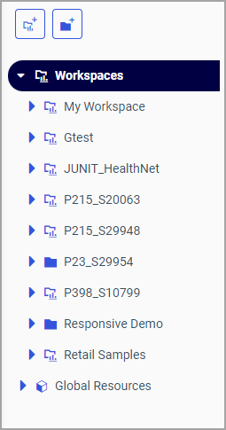 on top of the Resources tree to add new workspaces and folders to your repository. These buttons mirror the icons for workspaces